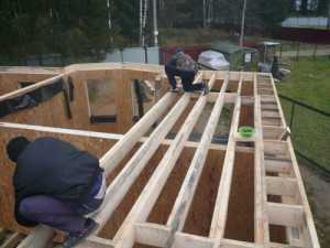 ΠΠΎΡΠ»Π΅ ΡΡΡΠ°Π½ΠΎΠ²ΠΊΠΈ ΠΎΠΏΠΎΡΠ½ΡΡ ΠΊΠΎΠ½ΡΡΡΡΠΊΡΠΈΠΉ ΠΏΡΠΈΡΡΡΠΏΠ°ΡΡ ΠΊ ΡΠΊΠ»Π°Π΄ΠΊΠ΅ ΡΡΠ΅ΠΏΠ»ΠΈΡΠ΅Π»Ρ. ΠΠ»Ρ ΡΡΠΎΠ³ΠΎ ΠΊ Π±ΠΎΠΊΠΎΠ²ΡΠΌ ΠΏΠΎΠ²Π΅ΡΡ Π½ΠΎΡΡΡΠΌ Π΄Π΅ΡΠ΅Π²ΡΠ½Π½ΡΡ Π±Π°Π»ΠΎΠΊ ΠΏΡΠΈΠ±ΠΈΠ²Π°ΡΡ Π±ΡΡΡΠΊΠΈ Ρ ΡΠ΅ΡΠ΅Π½ΠΈΠ΅ΠΌ 5Γ5 ΡΠ°Π½ΡΠΈΠΌΠ΅ΡΡΠΎΠ², Π΄Π°Π»Π΅Π΅ Π½Π° Π½ΠΈΡ ΡΠΊΠ»Π°Π΄ΡΠ²Π°ΡΡΡΡ Π΄Π΅ΡΠ΅Π²ΡΠ½Π½ΡΠ΅ ΡΠΈΡΡ, Π²ΡΠΏΠΎΠ»Π½Π΅Π½ΠΈΠ΅ ΠΈΠ· Π΄ΠΎΡΠΊΠΈ 5Γ15 ΡΠ°Π½ΡΠΈΠΌΠ΅ΡΡΠΎΠ². ΠΠΈΠΆΠ½ΡΡ ΡΠ°ΡΡΡ ΠΏΠ΅ΡΠ΅ΠΊΡΡΡΠΈΡ (ΠΏΠΎΡΠΎΠ»ΠΎΠΊ) ΠΏΠΎΠ΄ΡΠΈΠ²Π°ΡΡ ΠΏΡΠΈ ΠΏΠΎΠΌΠΎΡΠΈ Π³ΠΈΠΏΡΠΎΠΊΠ°ΡΡΠΎΠ½Π°, Π΄ΠΎΡΠΎΠΊ ΠΈΠ»ΠΈ Π΄ΡΡΠ³ΠΈΡ ΠΌΠ°ΡΠ΅ΡΠΈΠ°Π»ΠΎΠ². Π’Π΅ΠΏΠ΅ΡΡ ΠΌΠΎΠΆΠ½ΠΎ ΡΠ»ΠΎΠΆΠΈΡΡ ΡΡΠ΅ΠΏΠ»ΠΈΡΠ΅Π»Ρ ΠΏΠΎ ΡΠΎΠ»ΡΠΈΠ½Π΅ Π±Π°Π»ΠΎΠΊ, Π° Π·Π°ΡΠ΅ΠΌ ΠΌΠΎΠ½ΡΠΈΡΡΡΡ Π΄Π΅ΡΠ΅Π²ΡΠ½Π½ΡΠ΅ Π»Π°Π³ΠΈ ΠΈ ΠΏΠΎΠ».Β