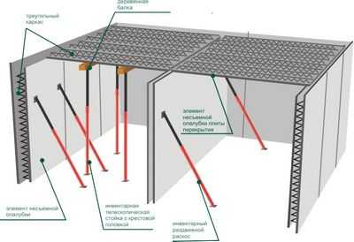 Π£ΡΡΡΠΎΠΉΡΡΠ²ΠΎ ΡΠ±ΠΎΡΠ½ΠΎ-ΠΌΠΎΠ½ΠΎΠ»ΠΈΡΠ½ΡΡ ΠΏΠ΅ΡΠ΅ΠΊΡΡΡΠΈΠΉ ΠΌΠΎΠΆΠ½ΠΎ ΡΠ²ΠΈΠ΄Π΅ΡΡ Π² ΡΠ°ΠΊΠΎΠΉ ΡΡ Π΅ΠΌΠ΅ Π΄Π΅ΠΉΡΡΠ²ΠΈΠΉ: ΡΠ½Π°ΡΠ°Π»Π° Π΄Π΅Π»Π°Π΅ΡΡΡ ΡΠΈΡΡΠ΅ΠΌΠ° ΠΈΠ· ΠΊΠΎΠ»ΠΎΠ½Π½ ΠΈΠ»ΠΈ Π±Π°Π»ΠΎΠΊ (Π·Π΄Π΅ΡΡ ΠΌΠΎΠΆΠ½ΠΎ ΠΈΡΠΏΠΎΠ»ΡΠ·ΠΎΠ²Π°ΡΡ Π±ΡΡΡ, ΡΠΎΠ³Π΄Π° ΡΡΡΠΎΠΉΡΠΈΠ²ΠΎΡΡΡ ΠΊΠΎΠ½ΡΡΡΡΠΊΡΠΈΠΈ Π·Π½Π°ΡΠΈΡΠ΅Π»ΡΠ½ΠΎ ΡΠ²Π΅Π»ΠΈΡΠΈΡΡΡ), Π·Π°ΡΠ΅ΠΌ Π½Π° Π½Π΅Π΅ ΡΠΊΠ»Π°Π΄ΡΠ²Π°ΡΡΡΡ ΠΏΡΡΡΠΎΡΠ΅Π»ΡΠ΅ Π±Π»ΠΎΠΊΠΈ ΠΈΠ· ΠΆΠ΅Π»Π΅Π·ΠΎΠ±Π΅ΡΠΎΠ½Π° ΠΈΠ»ΠΈ Π³Π°Π·ΠΎΠ±Π΅ΡΠΎΠ½Π°, ΠΈ Π² ΠΏΡΠΎΡΠ΅ΡΡΠ΅ ΠΈΡ ΡΠΊΠ»Π°Π΄ΠΊΠΈ Π² ΠΈΡ ΠΏΡΡΡΠΎΡΡ ΠΎΠ΄Π½ΠΎΠ²ΡΠ΅ΠΌΠ΅Π½Π½ΠΎ Π·Π°Π»ΠΈΠ²Π°Π΅ΡΡΡ Π±Π΅ΡΠΎΠ½.