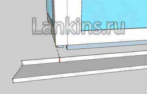 1. Наносим метку. Берем короткий левый отлив и прикладываем его по месту к раме так, чтобы его левый край прижался к стене. Делаем метку карандашом в месте будущего стыка отливов. Если наш отлив будет крепиться на раму, то метка совпадет с углом оконной конструкции.