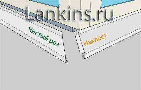 Для этого при разметке на одном из отливов, участвующих в соединении предусматривается нахлест, который слегка загибается вниз. А на втором выполняется чистый рез. Причем нахлест прячется под чистый рез.