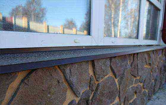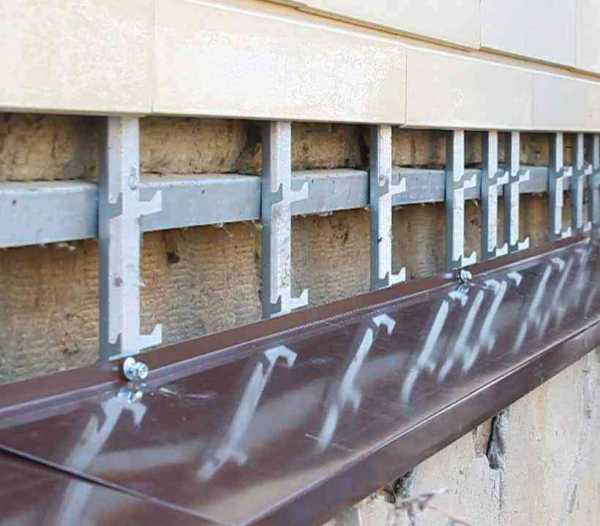 Если стены дома планируется отделывать вентилируемым фасадом, то устанавливать отливы необходимо перед окончанием монтажа фасада. Они крепятся непосредственно к направляющим профилям, а затем место соединения закрывается облицовочным материалом.