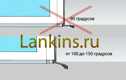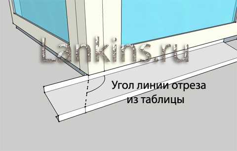 Но, потому как, наклон для отлива — необходим, и имеет различные значения от 100 до 150 градусов в зависимости от проема, соответственно и угол линии отреза у нас будет различным от 125 до 135 градусов.