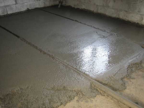 После завершения установки маяков можно приступать к самому процессу по укладке бетона.