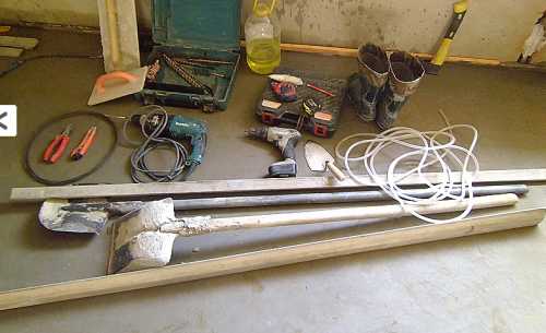 Для того, чтобы залить бетон необходимо подготовить следующие инструменты: