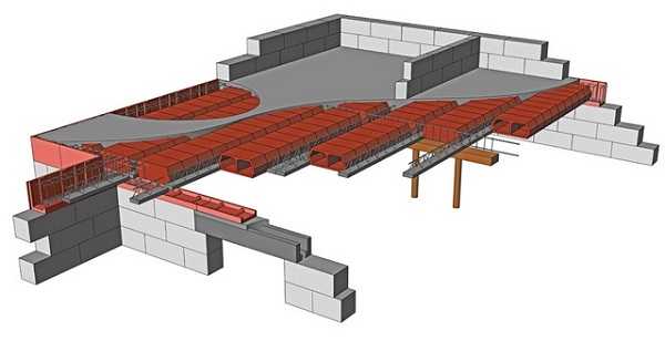 Выполненное таким образом перекрытие считается самым надежным и долговечным, в отличие от деревянных конструкций оно практически не подвержено разрушению, что увеличивает срок службы всего здания.