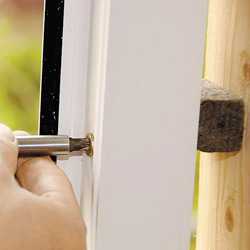 ΠΠ°Π»Π΅Π΅ ΠΊΡΠ΅ΠΏΠΈΠΌ Π΅Π³ΠΎ ΠΏΠ»Π°ΡΡΠΈΠΊΠΎΠ²ΡΠΌΠΈ ΡΡΠ°ΠΏΠΈΠΊΠ°ΠΌΠΈ ΠΈ ΠΏΡΠΎΡΠΈΠ»ΡΠ½ΡΠΌΠΈ ΡΠΈΠΏΠ°ΠΌΠΈ, Π²ΡΡΠ°Π²Π»ΡΠ΅ΠΌΡΠΌΠΈ Π² ΠΏΠ°Π·Ρ. ΠΡΠΈ Π»Π΅Π³ΠΊΠΎΠΌ ΠΏΠΎΡΡΡΠΊΠΈΠ²Π°Π½ΠΈΠΈ ΠΈ ΡΠ³Π»ΡΠ±Π»Π΅Π½ΠΈΠΈ ΡΠΈΠΏΠ° Π² ΠΏΡΠ΅Π΄Π½Π°Π·Π½Π°ΡΠ΅Π½Π½ΡΠΉ Π΅ΠΌΡ ΠΏΠ°Π·, Π΄ΠΎΠ»ΠΆΠ΅Π½ Π²ΠΎΠ·Π½ΠΈΠΊΠ½ΡΡΡ ΡΠ΅Π»ΡΠΎΠΊ, Π·Π½Π°ΠΊ ΡΠΎΠ³ΠΎ, ΡΡΠΎ ΠΊΡΠ΅ΠΏΠ»Π΅Π½ΠΈΠ΅ ΡΡΡΠ°Π½ΠΎΠ²Π»Π΅Π½ΠΎ. ΠΠΎΡΠ»Π΅ ΡΡΠΎΠ³ΠΎ Π·Π°ΠΏΠΎΠ»Π½ΡΠ΅ΠΌ Π²ΡΠ΅ ΠΏΡΠΎΡΡΡΠ°Π½ΡΡΠ²ΠΎ ΠΌΠ΅ΠΆΠ΄Ρ ΠΊΠΎΡΠΎΠ±ΠΊΠΎΠΉ ΠΈ ΠΎΠΊΠ½ΠΎΠΌ ΠΏΡΠΈ ΠΏΠΎΠΌΠΎΡΠΈ ΠΌΠΎΠ½ΡΠ°ΠΆΠ½ΠΎΠΉ ΠΏΠ΅Π½Ρ (ΠΊΠ°ΠΊ Ρ Π½Π°ΡΡΠΆΠ½ΠΎΠΉ, ΡΠ°ΠΊ ΠΈ Ρ Π²Π½ΡΡΡΠ΅Π½Π½Π΅ΠΉ ΡΡΠΎΡΠΎΠ½Ρ ΠΎΠΊΠ½Π°). ΠΠΎΡΠ»Π΅ Π·Π°ΡΡΡΠ²Π°Π½ΠΈΡ ΠΈΠ·Π»ΠΈΡΠΊΠΈ ΠΏΠ΅Π½Ρ ΡΡΠ΅Π·Π°ΡΡΡΡ Π½ΠΎΠΆΠΎΠΌ.