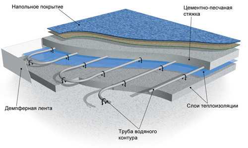 Схема цементно-песчаной стяжки с теплоизоляцией.