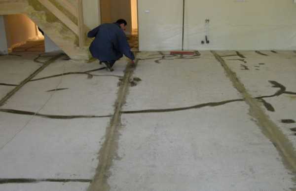 - Вначале убираются все дефекты, и выпуклые части с поверхности пола.