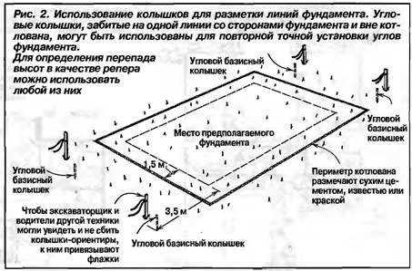 - Точная и рациональная разметка границ фундамента.