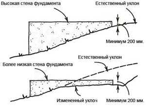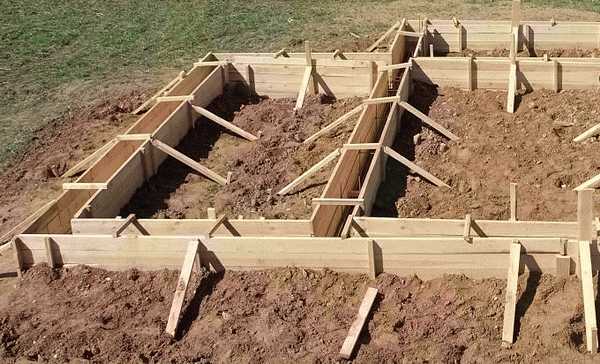 Если фундамент заглубляется в землю, то здесь опалубка должна как бы продолжать ширину траншеи в земле и выводить его на нужную высоту над горизонтом земли.