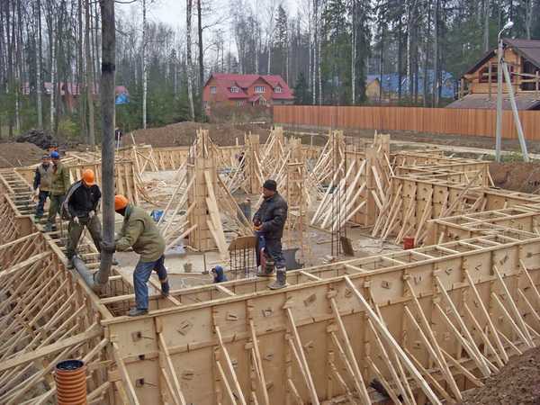 С этим этапом работ справитесь как вы сами, так и бригада наемных рабочих. Если вы нанимаете рабочих, то не поленитесь на этом этапе проверить, насколько ровно выставлена опалубка.