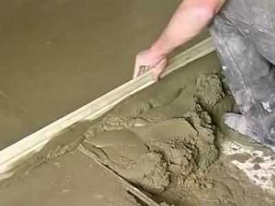 Бетонное основание заливают от стены, расположенной в противоположной стороне от двери, чтобы не пришлось выходить по невысохшей поверхности. После того, как вся площадь заполнена раствором, следует ее выровнять шпателем или правилом. Достижение ровной поверхности является очень важным на данном этапе, так как от данного показателя зависит существующая возможность укладки определенного напольного покрытия.