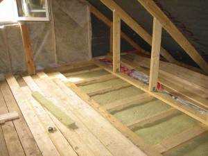 На черновой пол укладывают слой гидроизоляции, а сверху на него утеплитель