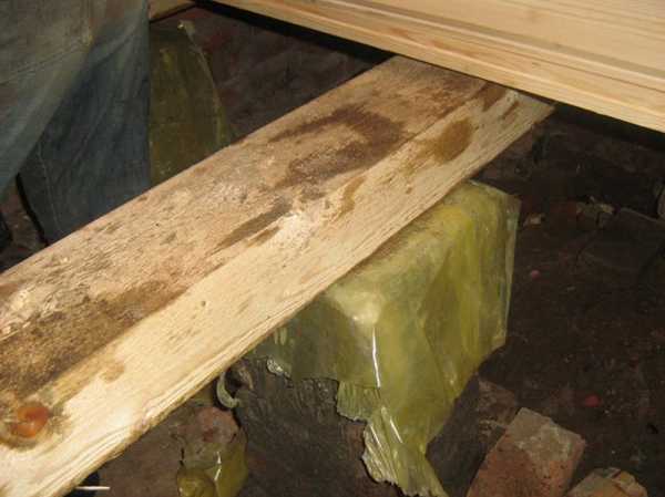 Но перед этим обязательно проводят гидроизоляционные работы, стелют на грунт рубероид и пропитывают деревянные балки специальным антисептическим составом. Он предотвращает появление и размножение насекомых, а также защищает дерево от влаги.