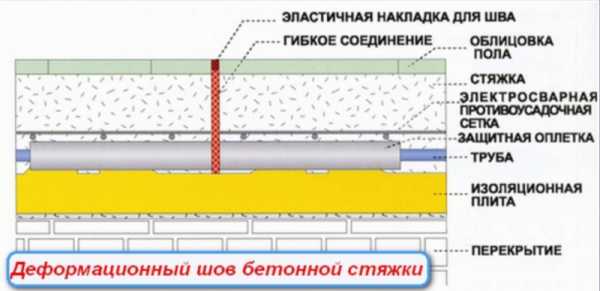 Схема деформационного шва стяжки из бетона.