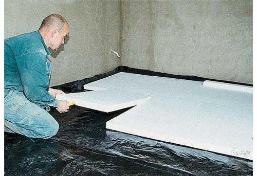 Соединения проклеиваются ремонтным скотчем. Около стен водоизоляционный матерьял обязан искать приблизительно на 20 см, все его остатки после заливания бережно обрезаются. Материал для утепления для пола прекраснее всего брать твёрдый, прекрасно себя проявил для подобной работы пенополистирол, который владеет всеми нужными свойствами. Ложится он так, чтобы не осталось никаких щелей, воздушных карманов, добавочный его крепление не нужно.
