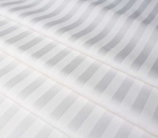 - Страйп считается разновидностью жаккардового сатина. Характерным признаком является рисунок из чередования полос плетения. Волокна окрашиваются в пастельные тона, и этим достигается эффект полос с оттенком. В составе страйп сатина почти нет синтетики.