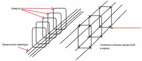 Крестообразные перехлесты необходимо соединять хомутами или вязальной проволокой. В местах анкеровки конструкция должна быть обязательно усилена дополнительной поперечной арматурой.