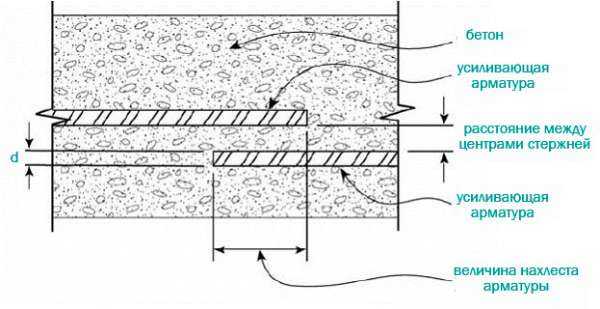 Основополагающим условием при выборе протяженности перехлеста является диаметр арматуры.