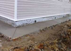 После строительства дома необходимо как можно скорее заняться возведением отмостки, так как фундамент дома подвержен промерзанию, а отмостка способна предотвратить эту неприятность.