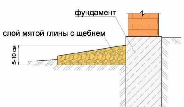 В предварительно вырытую траншею глубиной от 25 до 30 см укладывается слой глины высотой примерно 10 см.