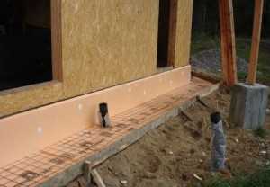 – использование в качестве теплоизоляционного материала пенополиуретана, он позволяет не только функционировать, как гидроизоляционный слой, но также позволяет организовать водоотвод от стен дома на расстояние до 1,5-2 м;