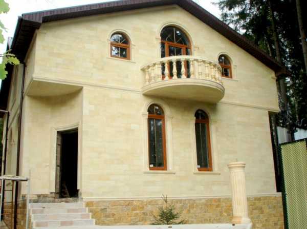Следующим по популярности идёт песчаник. Он отличается от гранита меньшей прочностью, а его цветовое оформление выражено песочной гаммой. Размеры песчаника могут быть самыми разными, это камни и плитки. Ракушечник – камень, который довольно часто используется при облицовке цоколя. Он надежнее и прочнее песчаника, а приобрести его можно в виде толстых плит. Иногда производители предлагают к продаже цельные блоки. Оттенок этого камня приближен к желтому. Структура состоит из пор, поэтому оставлять такой цоколь без отделки на длительное время не рекомендуется.