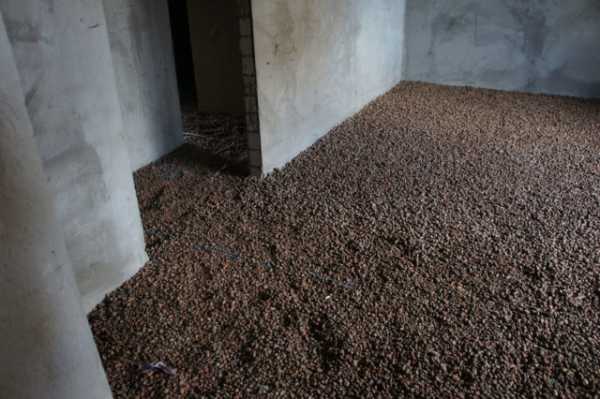 - Затем слой песка не менее 20-30 мм толщины, а потом слой керамзита (щебня), который тоже не должен быть менее 30-50 мм. Последний слой можно насыпать хоть метр высотой — этим уровнем вам предстоит нивелировать черновое основание, на которое, собственно и будет заливаться стяжка бетонная с керамзитом определённой фракции.