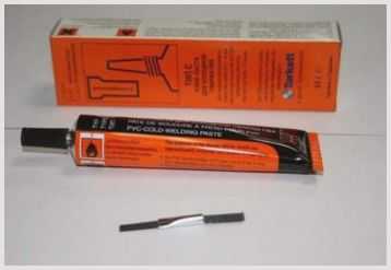 - В подготовленный надрезанный шов необходимо нанести особый клей для холодной сварки. Для комфорта применяют остроконечный тюбик.