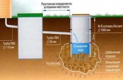 Принципиальный чертежСхема и инструкция установки септика из бетонных колец: