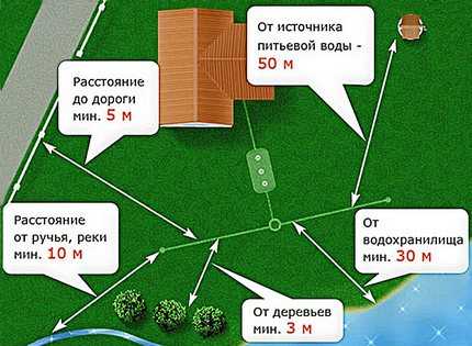 При выборе места размещения конструкции следует соблюдать следующие требования к удаленности септика от определенных объектов: