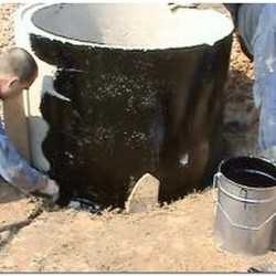 Наружную и внутреннюю поверхности бетонных колец необходимо зачистить. Далее с помощью компрессора накладывается первый слой смеси битума с бензином в пропорции 1:3. Последующие слои имеют пропорцию 1:1. Смесь доводится до полного высыхания. Второй слой наносится горячим битумом с помощью кисти или квача, доводится до остывания и покрывается третьим слоем горячего битума.
