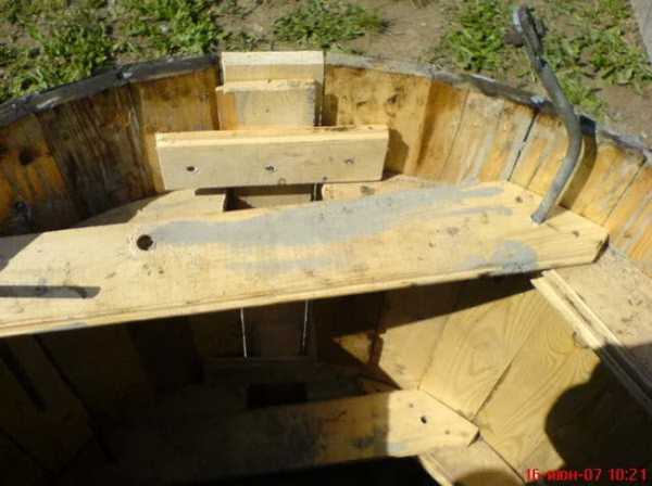 Также минусом является большой вес колец. Но этот минус проявляется только на этапе монтажа. Приходится прибегать к технике, или можно воспользоваться самодельной треногой с установленной на неё лебёдкой или талью.