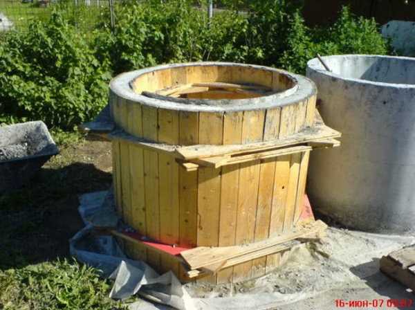 На наружную поверхность бетонного кольца, сверху по мастике, наклеивается рубероид или иной герметизирующий материал.