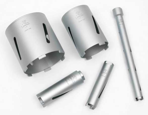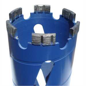 - Коронка для сухого бурения – это алмазный инструмент, который не нуждается в дополнительном охлаждении. Работу обеспечивает лазерная пайка алмазных сегментов и воздушный поток.