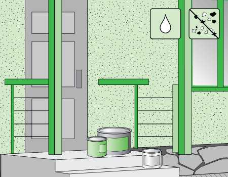 Краски для внешних работ отличаются присутствием в них бактерицидных и фунгицидных добавок, которые препятствуют образованию плесени и грибков на окрашиваемой поверхности. Помимо этого, такие краски защищают окрашенные поверхности от дождя и сырости. |