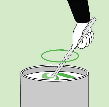 Несколько сложнее получить одинаковый оттенок краски, разлитой в разные ведра. Для того чтобы оттенок не отличался, колер необходимо дозировать с помощью одноразового шприца, маленькими порциями добавлять в одинаковые ведра с краской одинаковое количество колера, тщательно перемешивая до получения нужного оттенка. Краску необходимо размешивать горизонтальными вращательными движениями.