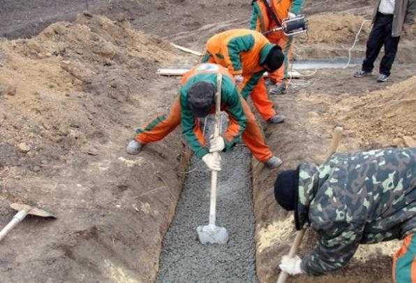 - Горизонтальный способ предполагает послойную заливку бетонного раствора. Для этого траншею делят на ровные горизонтальные части и заливают каждую часть отдельно.