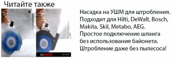 Кожух этот (самодельный или готовый) превращает болгарку в своеобразный однодисковый штроборез, это модифицированный защитный кожух. Он имеет как патрубок для присоединения пылесоса, так и прижимную платформу. Некоторые модели допускают регулировку расстояния вылета диска из кожуха, чтобы можно было настроить глубину выпиливаемой штробы.
