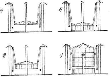 На рис. 113 показаны отдельные стадии монтажа резервуара.