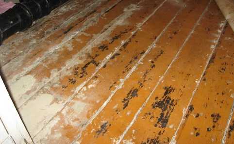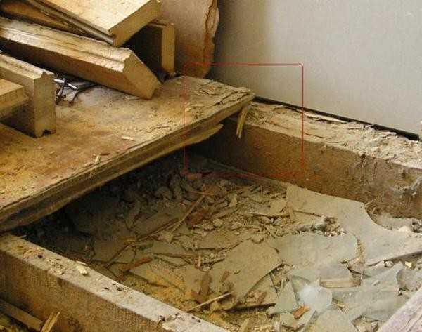 Деревянный пол должен быть прочен, неподвижен, сухой и не гнилой. Это же относится не только к доскам пола, но и к лагам и столбам на которых он уложен. Гнилые доски нужно заменить.