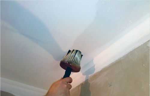 Грунтование необходимо проводить и в том случае, если выполняется покраска бетонного потолка без шпаклевки.