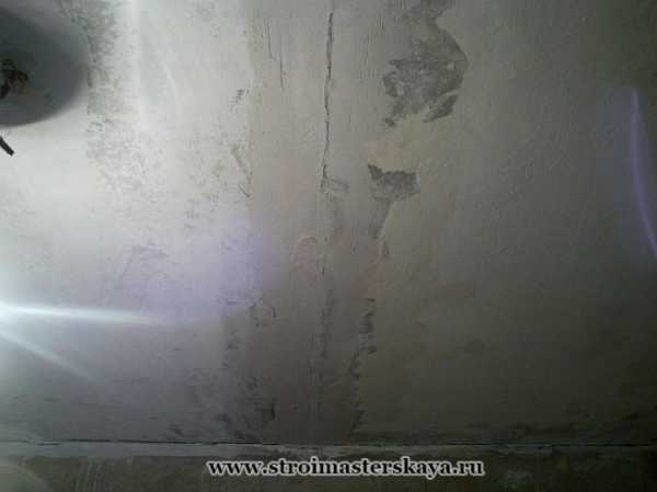 На потолке могут быть трещины, их также нужно зашпаклевать. Чтобы материал хорошо держался, трещину следует расширить до 3-5 мм. Затем углубление очищают от пыли и покрывают слоем грунтовки. После ее высыхания замазывают шпаклевкой или герметиком.