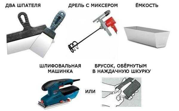 - Когда слой шпаклевки высохнет, по необходимости зашкурите поверхности шлифовальной бумагой или сеткой.