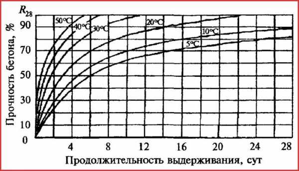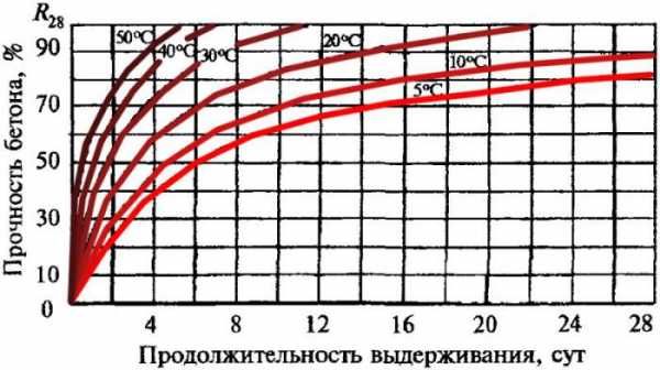 График набора прочности бетона в зависимости от температуры