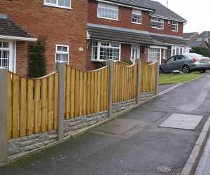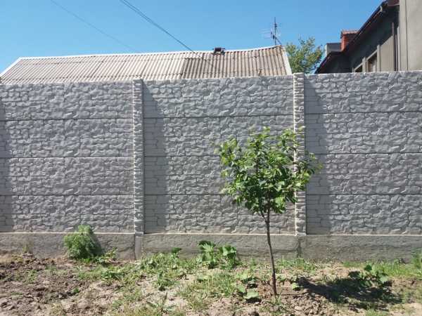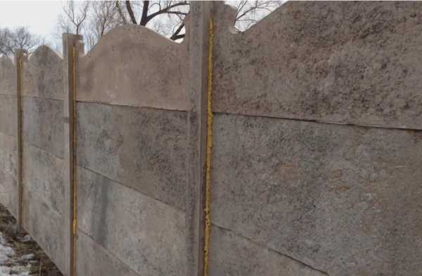 Ограждение бывает сборным, из нескольких бетонных секций. Для такой конструкции не нужно устанавливать столбы, но необходимо залить мощный фундамент.