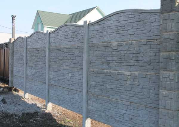 Самые лучшие отзывы частных застройщиков заслужили именно эти доступные и красивые ограждения. Каждая секция набирается из нескольких бетонных плит одинаковой ширины. Многообразие декоративных фактур позволяет строить из такого типового «конструктора» очень интересные сооружения. Панели размером 2х0,5 м вставляются как кассеты в пазы специальных декоративных столбов и так же легко вынимаются при демонтаже.