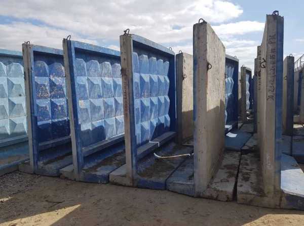 На следующем шаге собираются бетонные панели. На каждом столбе сделаны специальные выемки, в которые вставляются декоративные блоки.