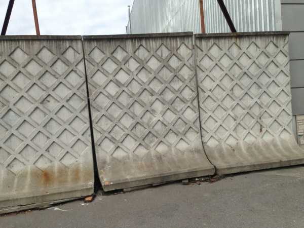 Довольно редкий вид ограждений в частном секторе нашел применение на стройплощадках, крупных промышленных и гражданских объектах. Состоит из бетонных секций очень большой массы с утолщением или «пятой» в нижней части. Такая особенность ж/б плиты смещает ее центр тяжести вниз, тем самым увеличивая устойчивость конструкции.
