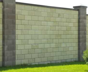 Забор из бетонных блоков не нуждается в установке столбов между отдельными секциями, но для кладки потребуются умения каменщика.
